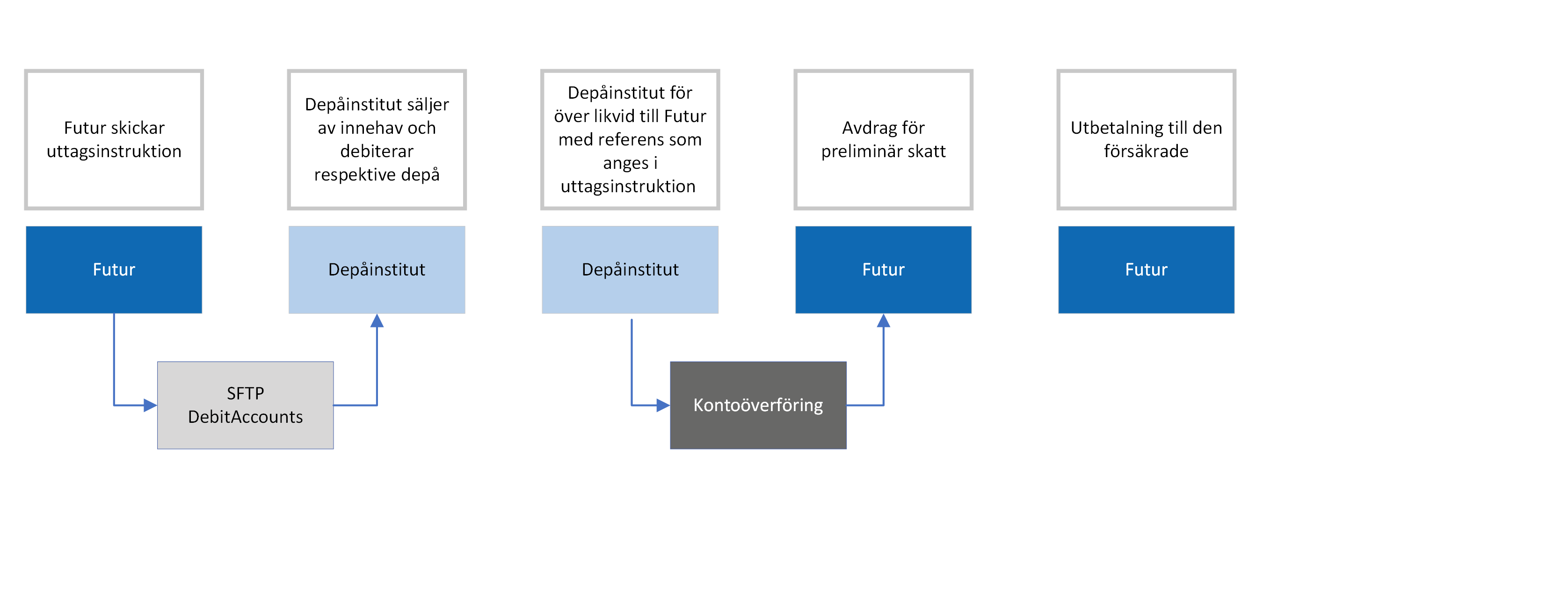 Eftersom Futur är ägare till depåerna måste återköp från försäkringen godkännas av Futur och uttag kan endast ske till föranmälda konton.