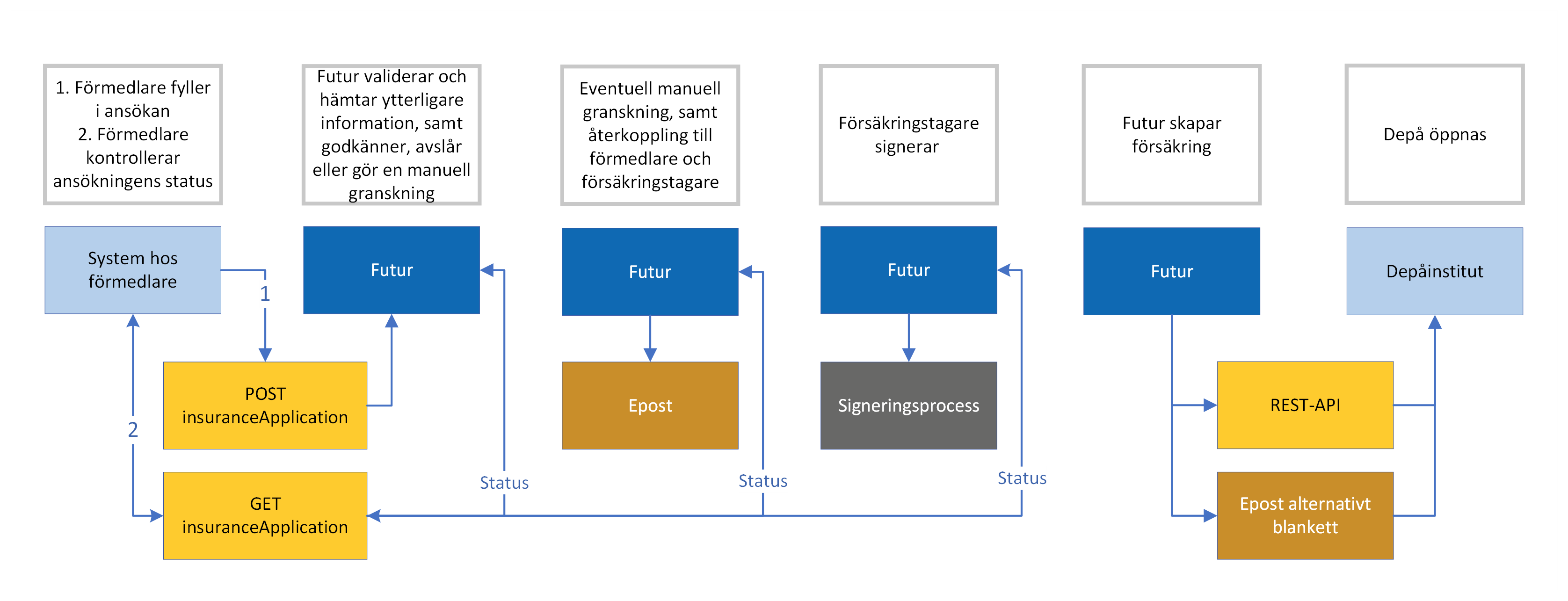 Begäran om att teckna en försäkring sker med XML-schemat Insurancepurchase. Efter att Futur bearbetat begäran, skickas ett svar med XML-schemat InsurancePurchaseResponse.