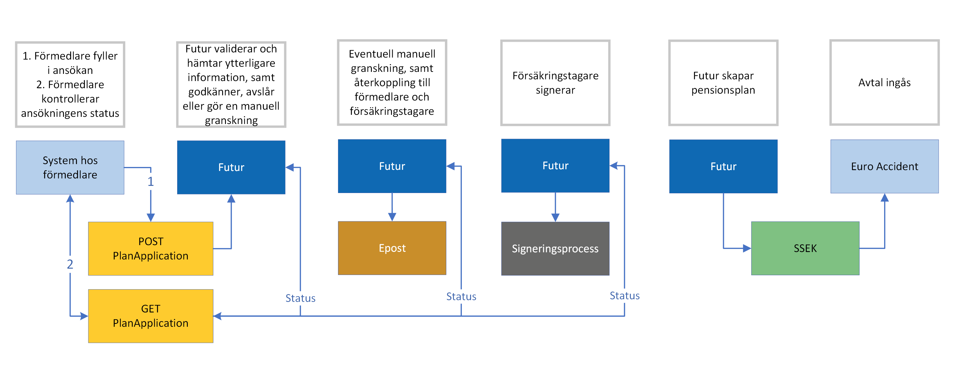För att teckna en pensionsplan (pil nummer 1 i bilden), använd denna API-metod: