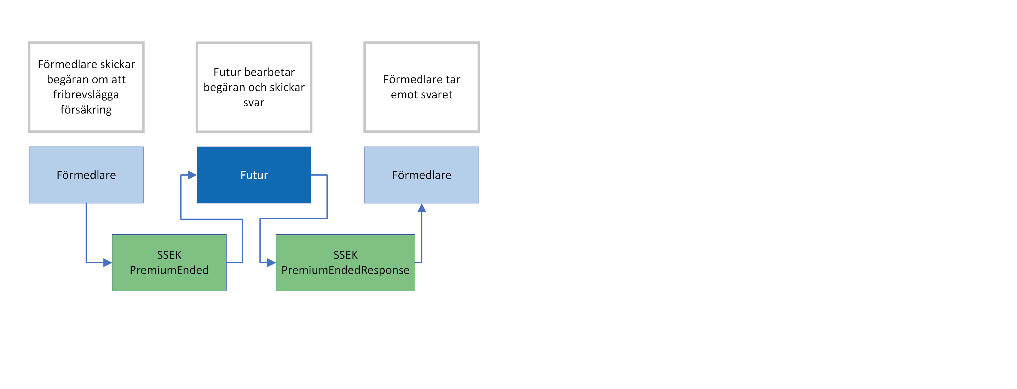 Begäran om att fribrevslägga en försäkring sker med XML-schemat PremiumEnded. Efter att Futur bearbetat begäran, skickas ett svar med XML-schemat "PremiumEndedResponse".