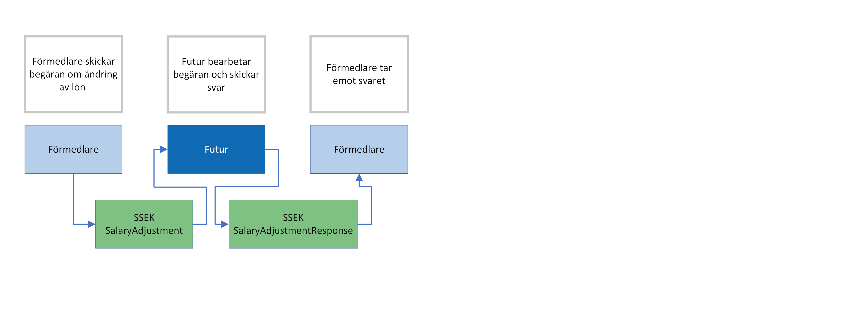 Begäran om ändra uppgift om en anställds lön sker med XML-schemat SalaryAdjustment. Efter att Futur bearbetat begäran, skickas ett svar med XML-schemat SalaryAdjustmentResponse.