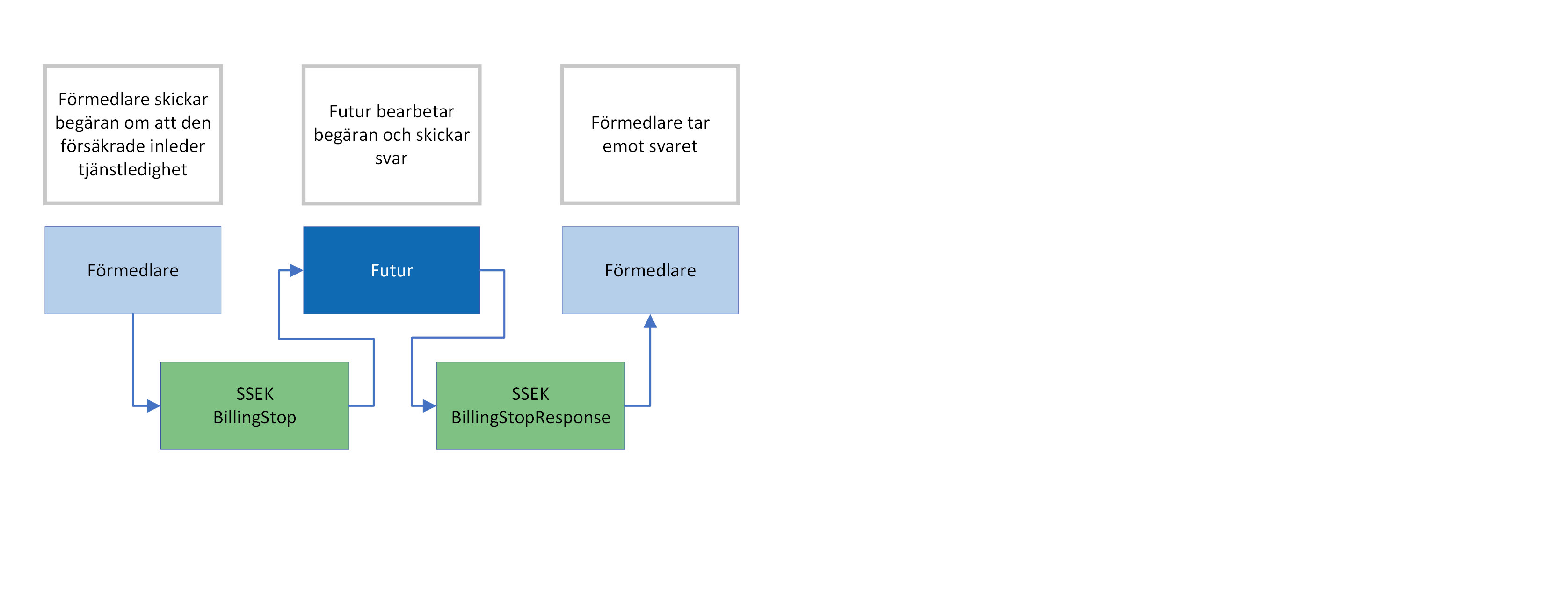 Begäran om att upphöra fakturering vid tjänstledighet sker med XML-schemat BillingStop. Efter att Futur bearbetat begäran, skickas ett svar med XML-schemat BillingStopResponse.