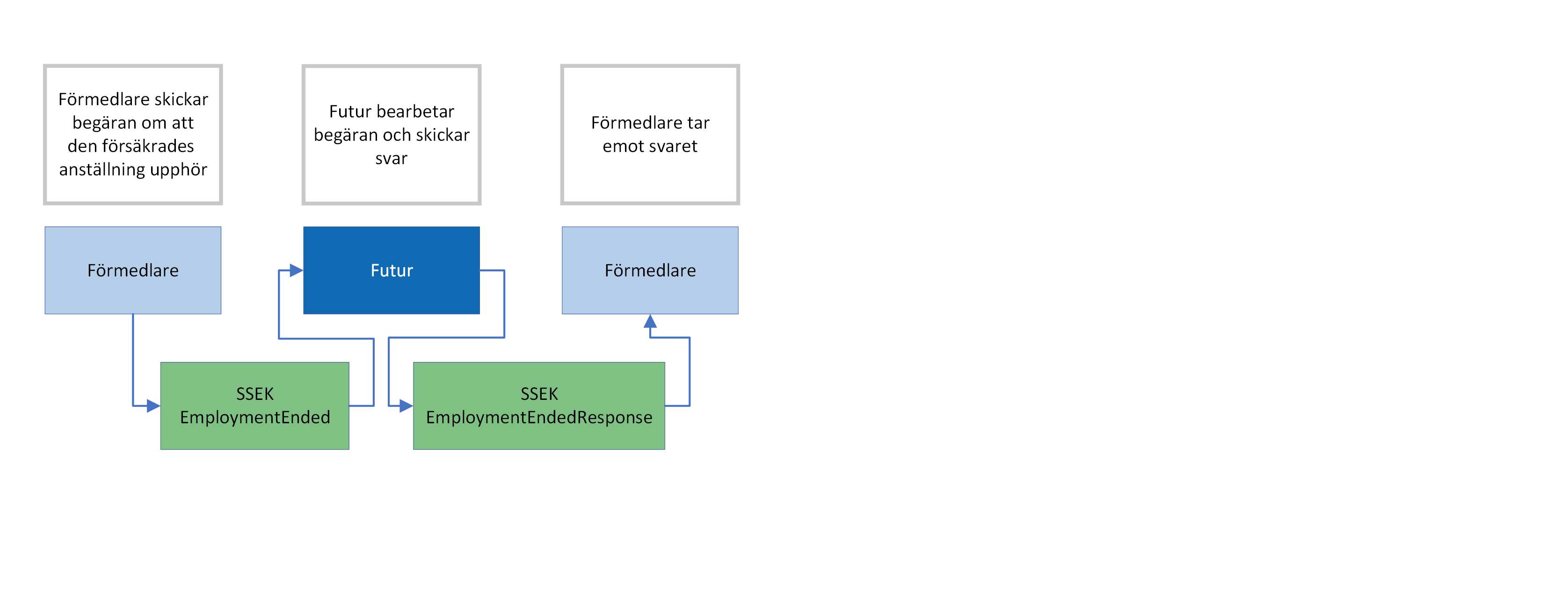 Begäran om att markera att en anställning upphört för en försäkrad, sker med XML-schemat EmploymentEnded. Efter att Futur bearbetat begäran, skickas ett svar med XML-schemat EmploymentEndedResponse.