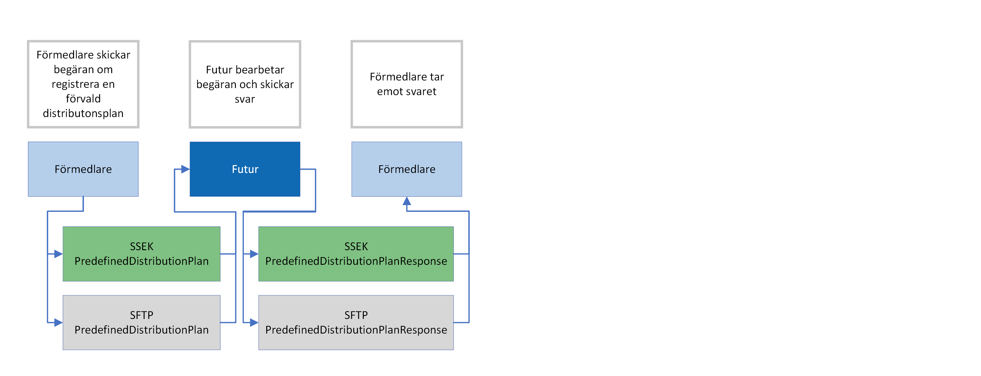Anmälan och registrering av en förvald distributionsplan sker med XML-schemat PredefinedDistributionPlan. Efter att Futur bearbetat begäran, skickas ett svar med XML-schemat PredefinedDistributionPlanResponse.