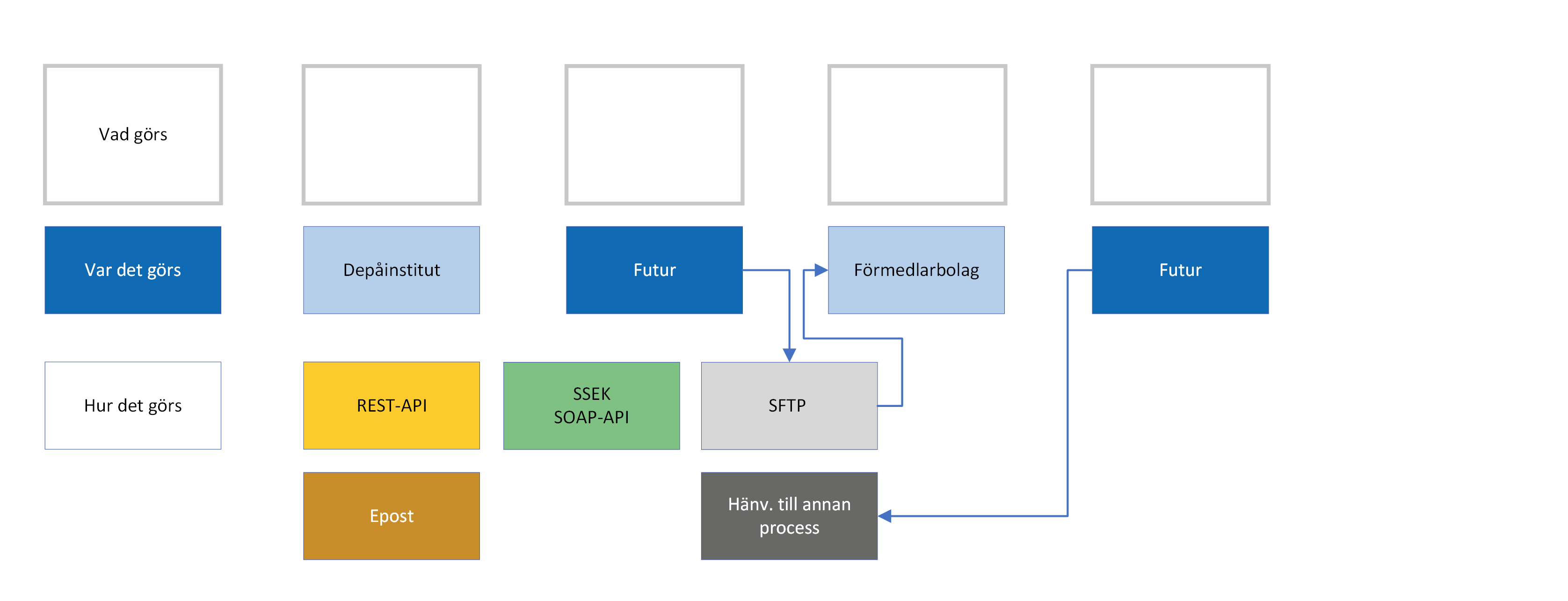 VAR det görs beskrivs i det mellersta lagret, exempelvis ett system hos Futur eller hos en förmedlare.